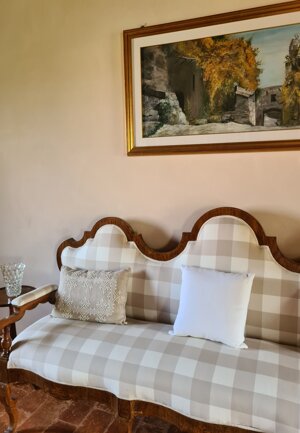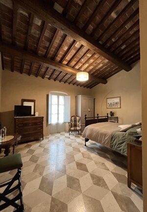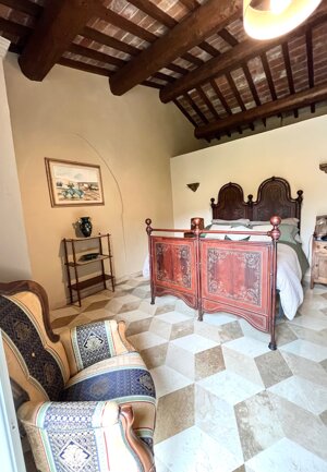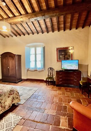 In questa camera camminerete sul pavimento originale in cotto toscano, posato nel 1830 circa e, restaurato a mano (da me) con olio di lino e cera solida, imperfetto allo sguardo ma piacevolissimo per camminarci a piedi nudi.