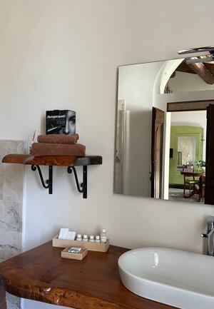 La Suite ha il nome di mia figlia, nata durante i lavori di ristrutturazione della Villa. In questa suite ho voluto il letto dei miei trisavoli, il pezzo più antico che viene tramandato nella nostra famiglia, e dedicare la suite a mia figlia, il futuro.